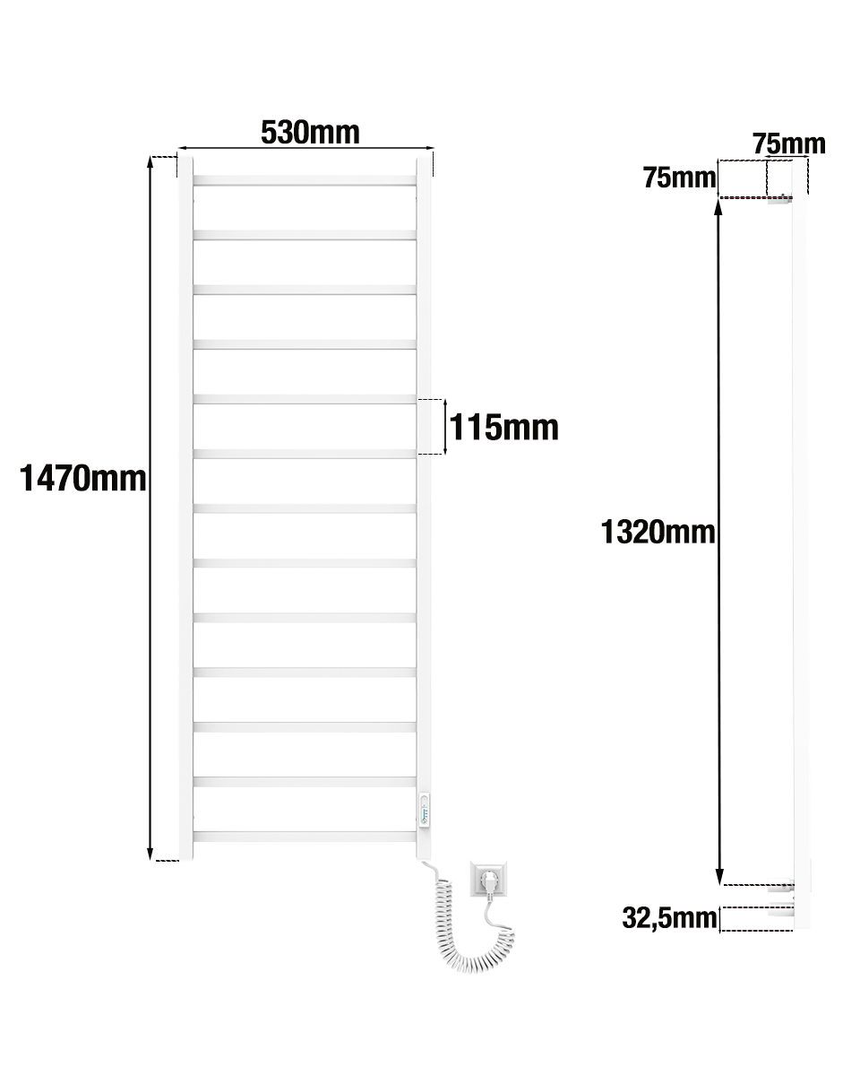 Jest to całkowicie elektryczny grzejnik łazienkowy, który nie wymaga podłączenia do instalacji centralnego ogrzewania ani rur z wodą. Wystarczy dostęp do prądu, aby urządzenie było gotowe do pracy. Dzięki temu można zamontować je praktycznie w każdym miejscu w łazience.Grzejnik wyposażony jest w suchy element grzewczy, dlatego nie wymaga żadnych płynów ani uzupełniania wody. Wystarczy podłączyć go do prądu, a urządzenie zacznie nagrzewać się niemal natychmiast, osiągając maksymalną temperaturę w ciągu kilku minut. To idealne rozwiązanie do: