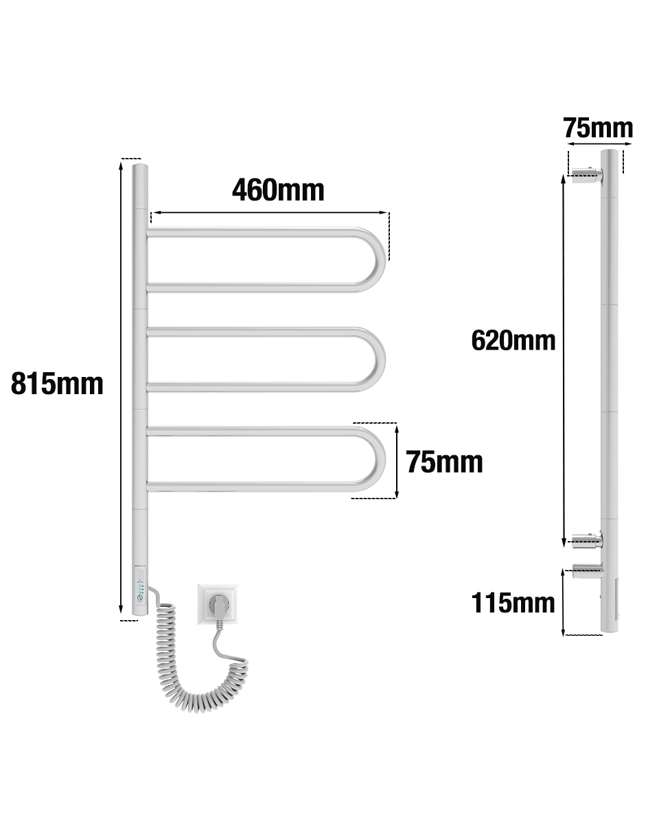 Jest to grzejnik całkiem elektryczny, bardzo wygodny w korzystaniu, nie jest wodny, nie potrzebuje podłączenia do systemu centralnego ogrzewania. Ten grzejnik można podłączyć w jakimkolwiek miejscu, gdzie jest dostęp do prądu. Urządzenie jest z suchym kablem w środku i nie potrzebuje żadnych dodatkowych płynów, warto tylko podłączyć go do prądu i działa! Nagrzewa się do maksymalnej temperatury w ciągu kilku minut. Jest to niezwykle wygodne, gdy zależy na szybkim wysuszeniu prania lub podgrzaniu ręcznika dla przyjemnego wycierania się po wyjściu z kąpieli.