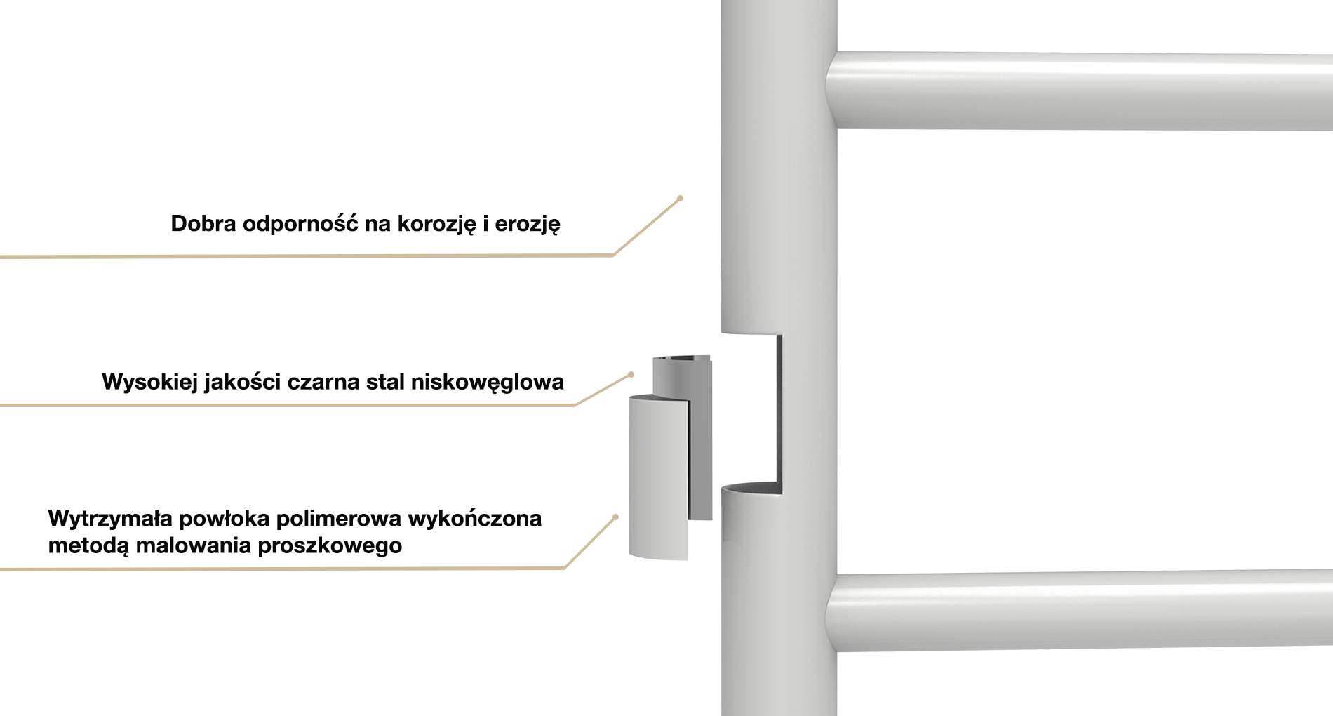 Jest to grzejnik całkiem elektryczny, bardzo wygodny w korzystaniu, nie jest wodny, nie potrzebuje podłączenia do systemu centralnego ogrzewania. Ten grzejnik można podłączyć w jakimkolwiek miejscu, gdzie jest dostęp do gniazdka elektrycznego. Urządzenie jest z suchym kablem w środku i nie potrzebuje żadnych dodatkowych płynów, warto tylko podłączyć go do prądu i działa! Nagrzewa się do maksymalnej temperatury w ciągu kilku minut. Jest to niezwykle wygodne, gdy zależy na szybkim wysuszeniu prania lub podgrzaniu ręcznika dla przyjemnego wycierania się po wyjściu z kąpieli.
