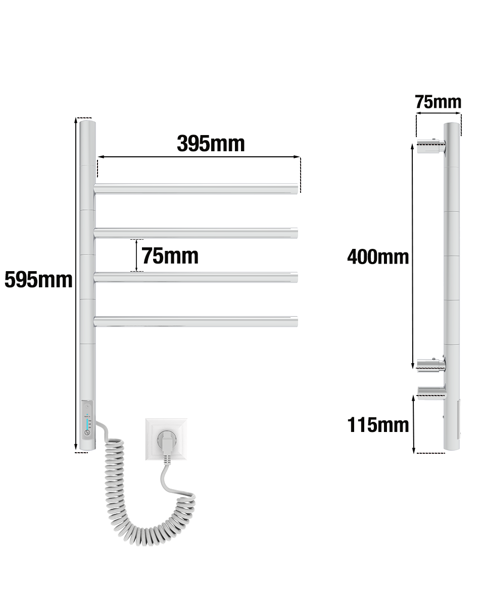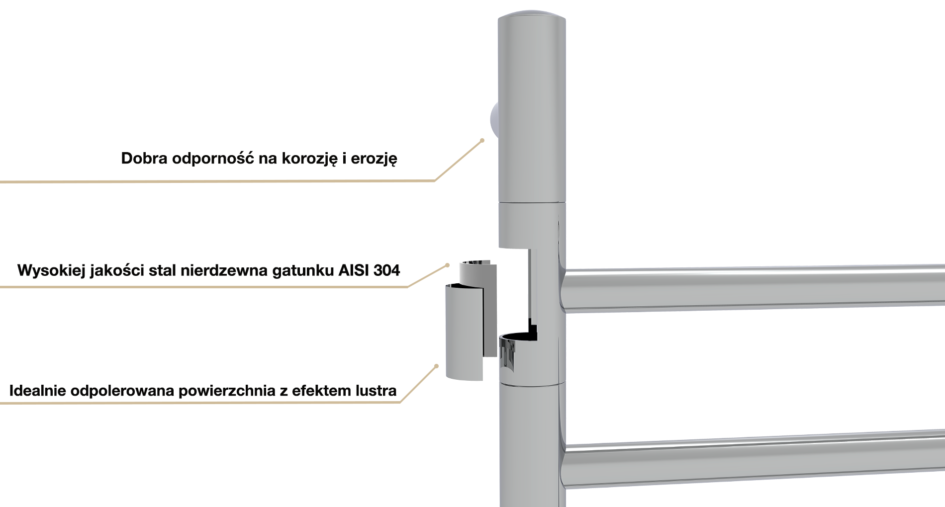 Jest to grzejnik całkiem elektryczny, bardzo wygodny w korzystaniu, nie jest wodny, nie potrzebuje podłączenia do systemu centralnego ogrzewania. Ten grzejnik można podłączyć w jakimkolwiek miejscu, gdzie jest dostęp do prądu. Urządzenie jest z suchym kablem w środku i nie potrzebuje żadnych dodatkowych płynów, warto tylko podłączyć go do prądu i działa! Nagrzewa się do maksymalnej temperatury w ciągu kilku minut. Jest to niezwykle wygodne, gdy zależy na szybkim wysuszeniu prania lub podgrzaniu ręcznika dla przyjemnego wycierania się po wyjściu z kąpieli.