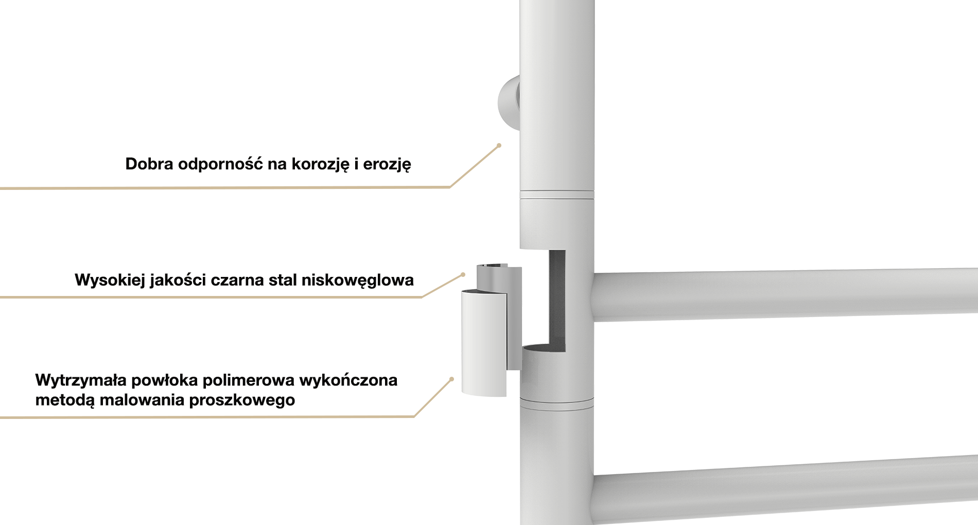 Jest to grzejnik całkiem elektryczny, bardzo wygodny w korzystaniu, nie jest wodny, nie potrzebuje podłączenia do systemu centralnego ogrzewania. Ten grzejnik można podłączyć w jakimkolwiek miejscu, gdzie jest dostęp do prądu. Urządzenie jest z suchym kablem w środku i nie potrzebuje żadnych dodatkowych płynów, warto tylko podłączyć go do prądu i działa! Nagrzewa się do maksymalnej temperatury w ciągu kilku minut. Jest to niezwykle wygodne, gdy zależy na szybkim wysuszeniu prania lub podgrzaniu ręcznika dla przyjemnego wycierania się po wyjściu z kąpieli.